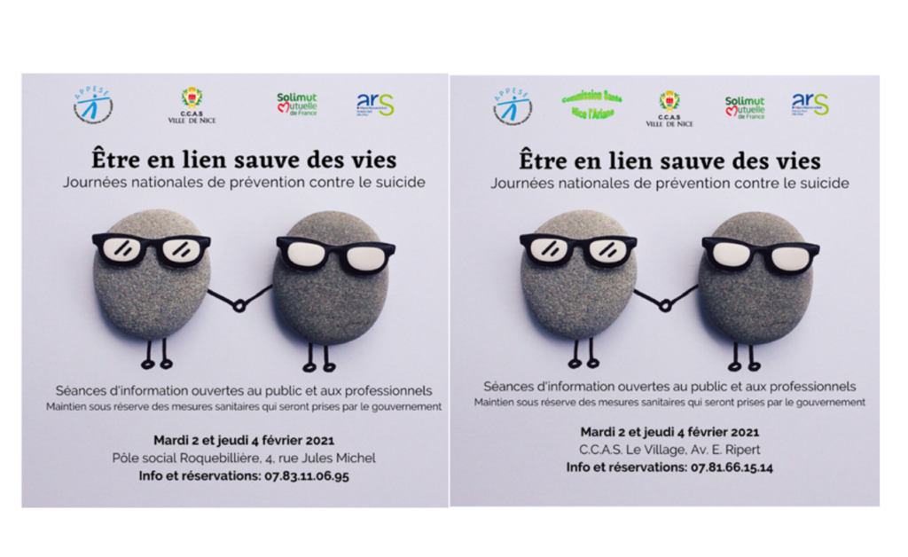 Dans le cadre des Journées Nationales de prévention du suicide, la Commission Santé Nice Ariane, l’APPESE, le SESSAD-APREH, en partenariat avec le CCAS de Nice, l’ARS PACA, et SOLIMUT Mutuelle de France, organisent deux demi-journées d’information : 📌Au Centre Social Le Village : matinées du mardi 2 et jeudi 4 février 2021 📌Au […]